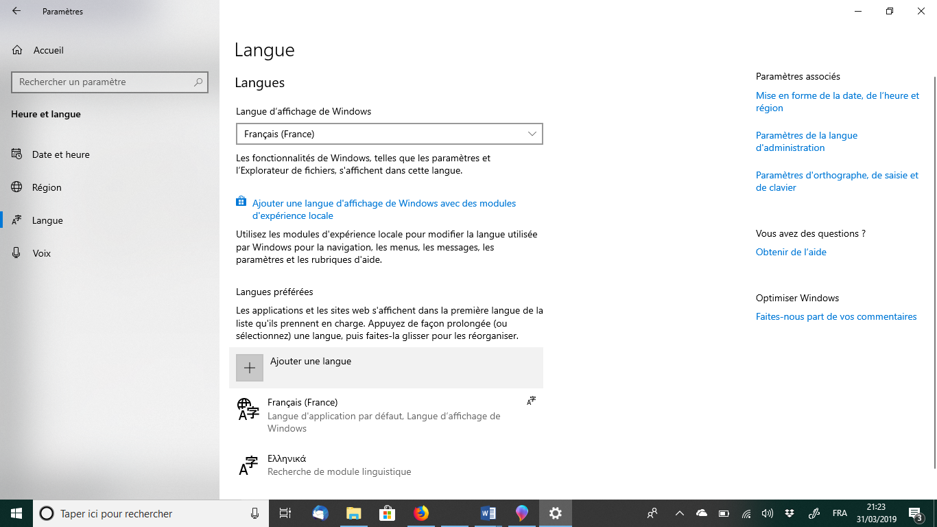 - Cliquez sur Heure et Langue